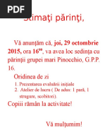 Anunt sedinta cu parintii gradinita. Invitatie la sedinta cu parintii. 0 au spus mulţumesc. 20 noiembrie 2011 09 04. Si ca sa nu cresc suspansul in mare e cam la fel cu mici diferente dar si cu puncte comune.
