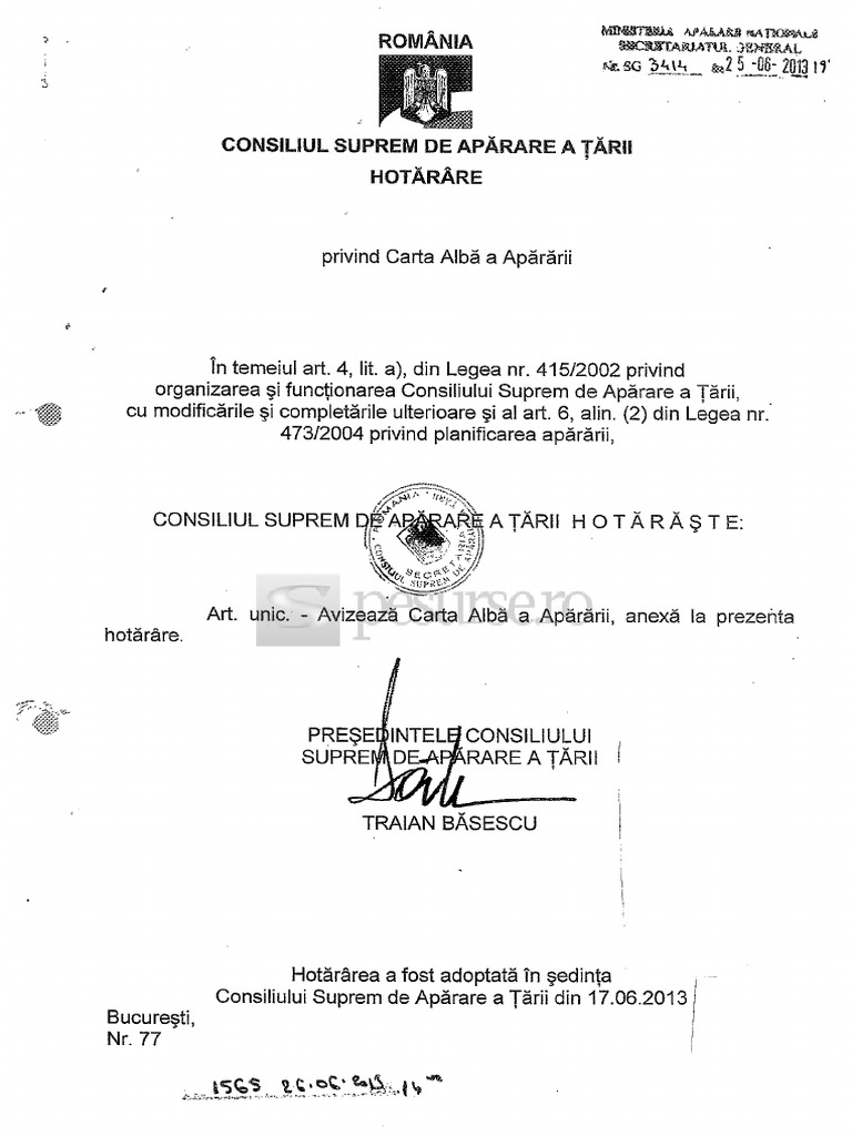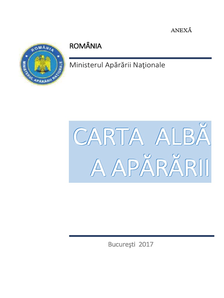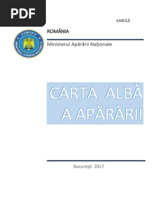 Carta alba a apararii. Carta albă a apărării mai arată că intensificarea competiţiei strategice în zonele de interes din vecinătatea româniei generează un context de securitate regional complex cu un spectru larg al riscurilor şi ameninţărilor la adresa intereselor naţionale vitale. Carta albă a apărării. Riscurile ameninţările şi. Guvernul a aprobat carta albă a apărării.