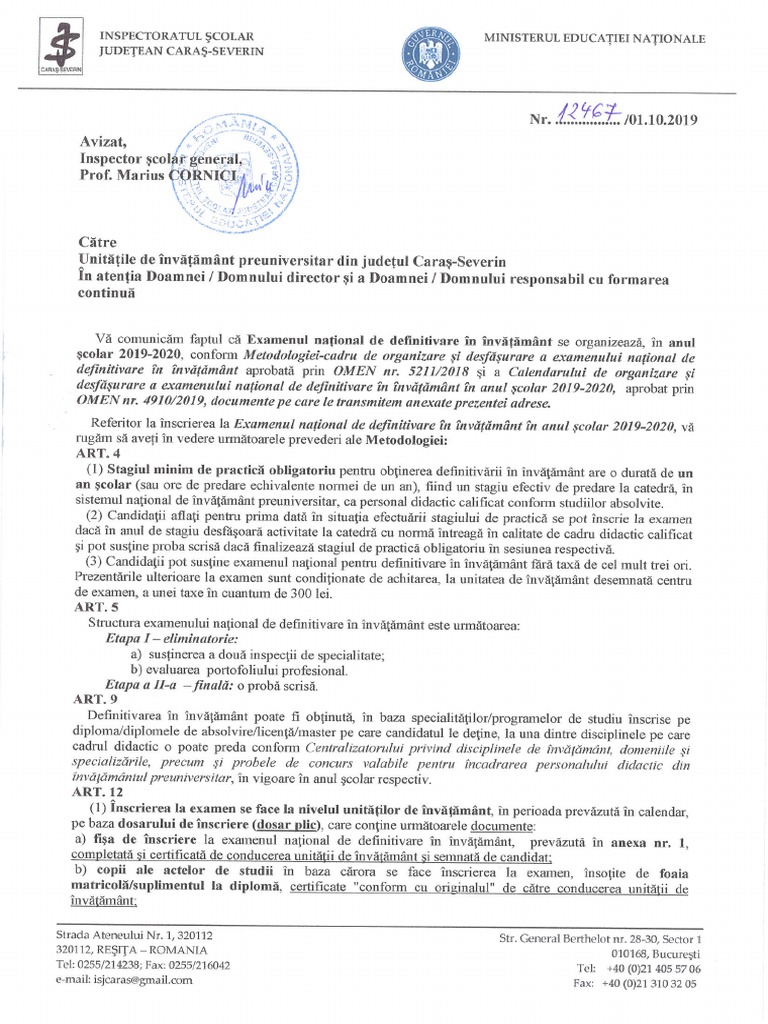 Acesta contine precizari privind completarea dosarelor si validarea datelor dar si explicatii practice privind realizarea portofoliului. Recomandari activitati extrascolare activitati artistice pentru elevi tabere si activitati extrascolare diverse limbi straine cursuri extrascolare activitati sportive pentru elevi anul scolar 2020 2021 concursuri si olimpiade nationale 2019 2020 noutati stiri pentru noul an scolar 2019 2020 bacalaureat 2020. Avem 378 vizitatori și nici un membru online. Luni 06 februarie 2017 16 54 sursa.