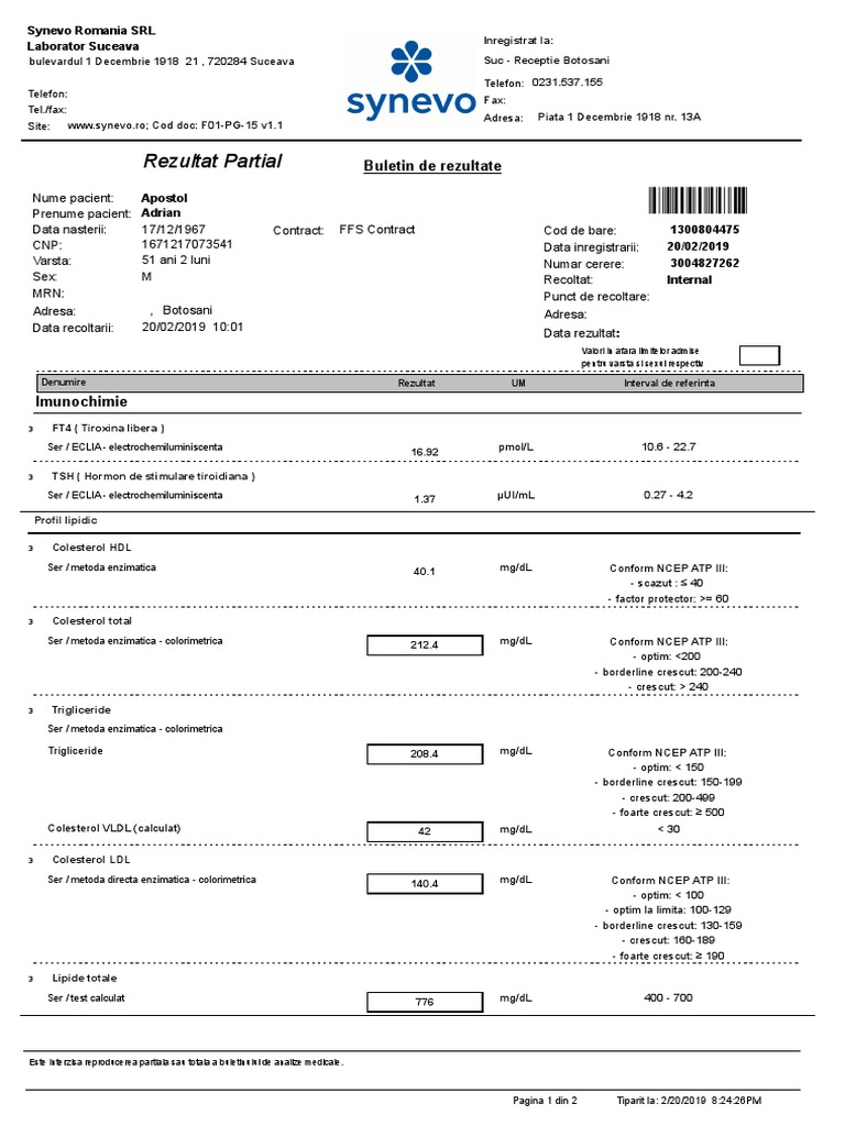 Colesterol Valori Normale Synevo