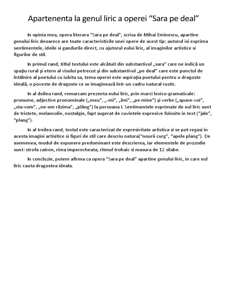 Trasaturile genului epic liric si dramatic. La persoana intai sau a doua utilizator brainly utilizator brainly eul liric este voca autorului si este identificat dupa verbele pronumele adj pronominale la persoana i sg. Eul liric reprezintă vocea scriitorului în operele care aparțin genului liric prin care se transmit în mod direct gânduri sentimente trăiri care pot fi intentificvate la nivelul mărcilor lexico gramaticale. 329 din 2006 iar tu ai putea să te afli în situaţia de a le încălca acum.