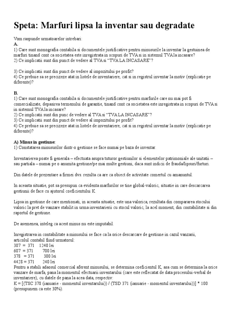 Procesul verbal de inventariere se întocmește la sfârșitul lucrărilor de inventariere de către comisia de inventariere special creată în acest scop și se înaintează conducerii întreprinderii pentru a decide măsurile care se impun urmare a constatărilor efectuate înscrise în procesul verbal de inventariere și anexele aferente. Original si sau copie xerox proces verbal de contraventie. Marfa deteriorata marfa degradata ajustare tva.