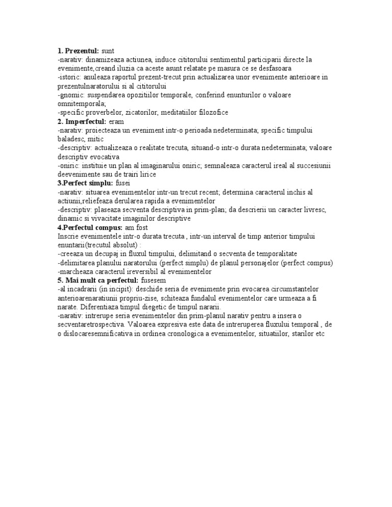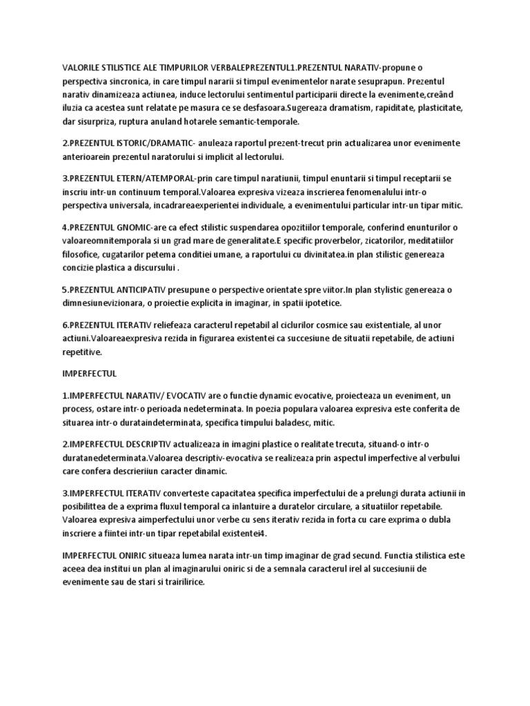 Indicativul perfect simplu este folosit uneori ca timp al narațiunii iar alteori pentru a exprima o acțiune trecută nu mai departe de ziua anterioară. Infinitivul perfect îndeplineşte funcţia stilistică de marcă a narativităţii prin instituirea unei succesiuni temporale. 13 bac 10 bacalaureat 2014 9 limba romana subiecte rezolvate 8. Este din subiectele de la sesiunea speciala puteti sa faceti o lista cu semnificatia utilizarii verbelor la prezent imperfect mai mult ca perfect viitor.